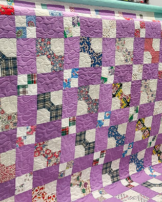 QUILT PREP: Is your quilt ready to be quilted? Before dropping off your quilt please give it a final press, and clip any dark threads that may show through light fabrics. When loading your quilt on my frame I will give your backing and quilt top a quick pass of the iron to remove any fresh creases. However, if you'd like me to give it a more detailed final once over with an ironing board press and clip any dark threads before loading I'll do that for a flat fee of $10 per quilt.